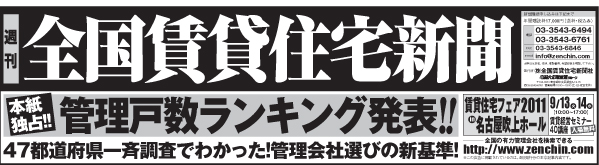 週刊全国賃貸住宅新聞は資産価値から利用価値へという住宅市場の構造変化にいち早く注目。賃貸経営、賃貸管理・仲介、土地の有効活用などの専門紙として1989年に創刊されました。賃貸経営に役立つ情報や、オーナー・不動産会社のニーズ、最新の設備やサービスなど、時代の変化を細かく拾い出し、最新情報を提供していきます。