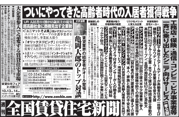 週刊全国賃貸住宅新聞は資産価値から利用価値へという住宅市場の構造変化にいち早く注目。賃貸経営、賃貸管理・仲介、土地の有効活用などの専門紙として1989年に創刊されました。賃貸経営に役立つ情報や、オーナー・不動産会社のニーズ、最新の設備やサービスなど、時代の変化を細かく拾い出し、最新情報を提供していきます。