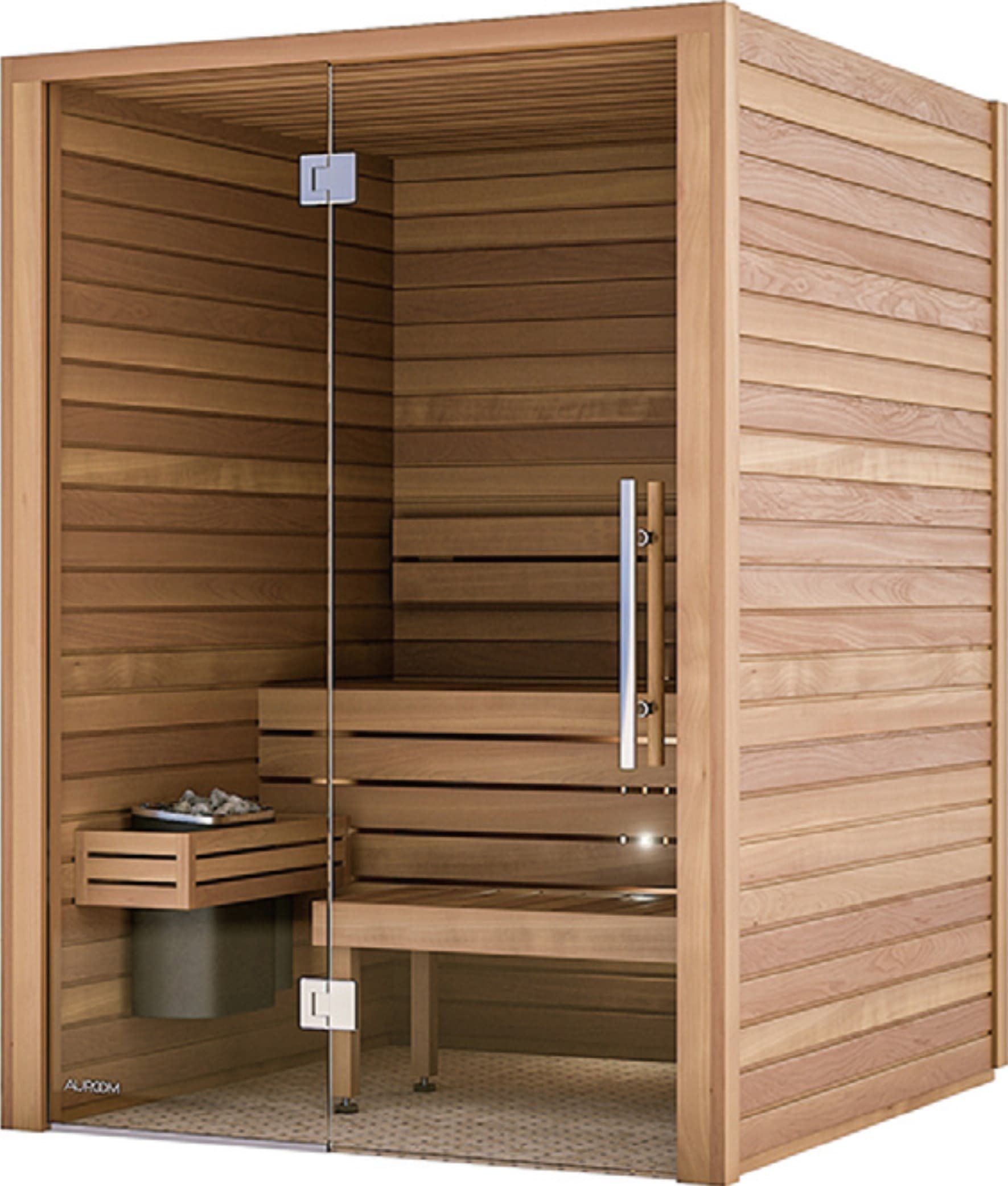 2~3人用の同製品は、幅150cm、奥行き150cm、高さ205cmの大きさで、日本の住宅の規格に合わせたサイズ設計となる。前面が耐熱性のガラスドアになっており、熱処理を加え耐久性を高めた木材と断熱材を使用。サウナ内は110度まで暖まるが、熱や湿気が外に漏れることは少ない。ベンチや背もたれ、サウナストーブを付属している。