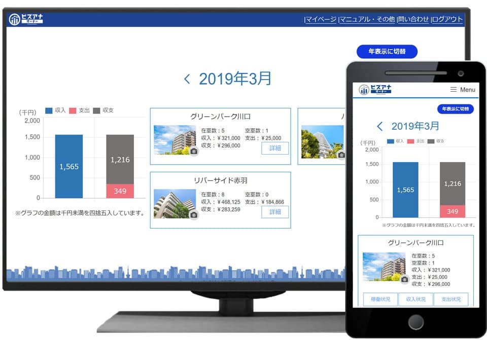 物件の収支状況をスマホ・パソコンから確認