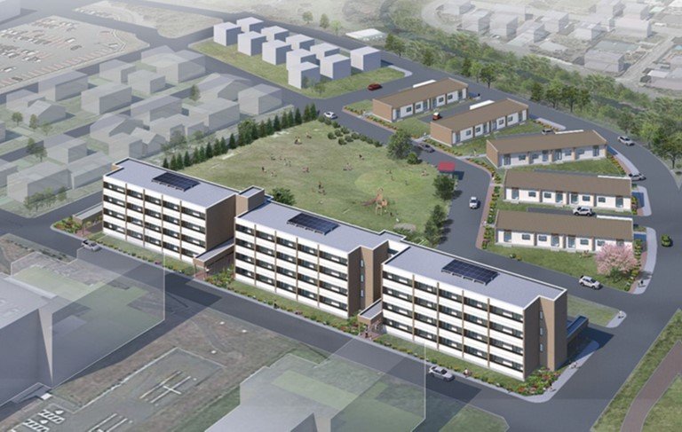 恵庭市の土地を無償で借り、土屋HDの資金で物件を建築後、市が借り上げる。2046年に土地と建物を土屋HDが市に譲渡する。20年間で家賃収入を得つつ、物件の減価償却を終えるスキームだ。また、団地の建て替えエリアに隣接する付帯事業用地を市から購入し、注文住宅用地として11区画の分譲販売も行う。