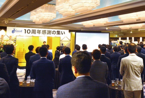 プロパティマネジメント事業を手がけるGood(グッド)リアルエステート(東京都港区)は11月22日、東京都千代田区のホテルニューオータニにおいて、設立10周年記念の祝賀会「10周年感謝の集い」を開催した。取引先のアセットマネジメント会社や金融会社などから、約100人が参加した。