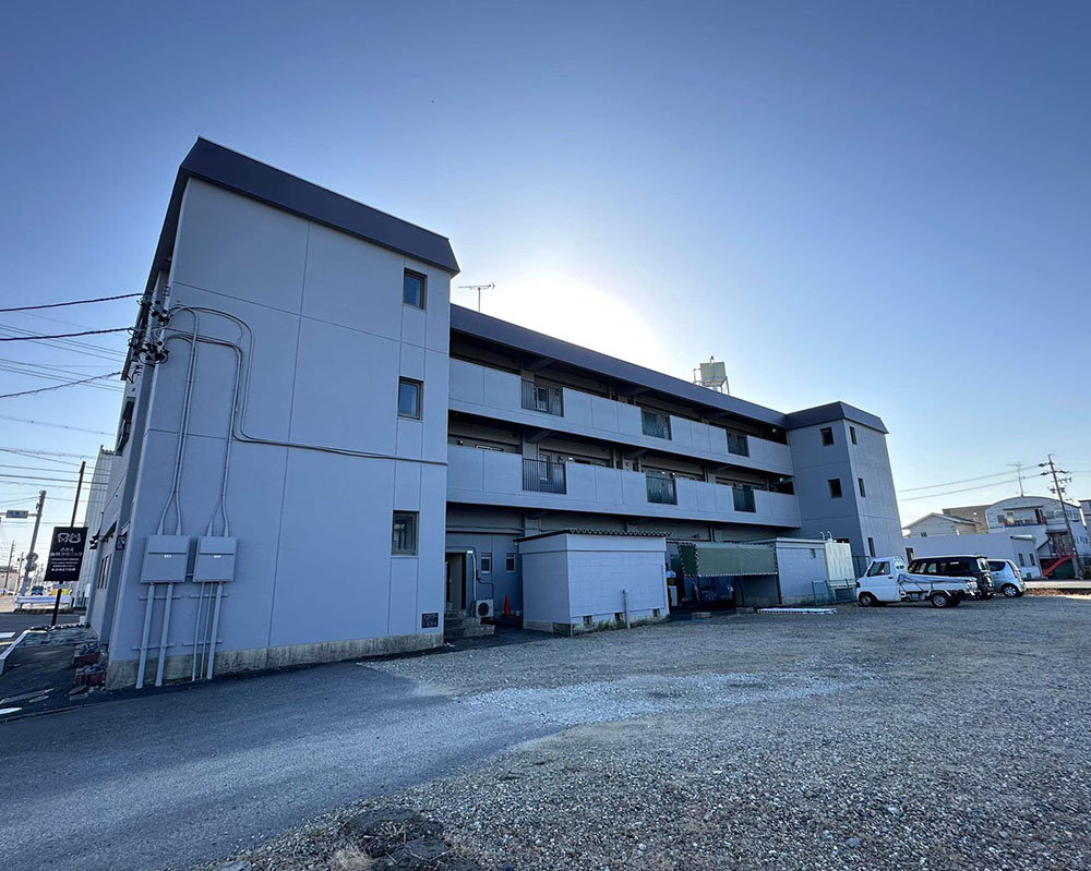 同物件は築45年のRC造3階建て全18戸で、岐阜県岐南町にある。18戸のうち、2~3階の12戸が賃貸住宅、1階の6戸が貸し店舗で、満室ラボが購入し、提携する4者と協力して再生した。同社初の自社所有物件として運営する。