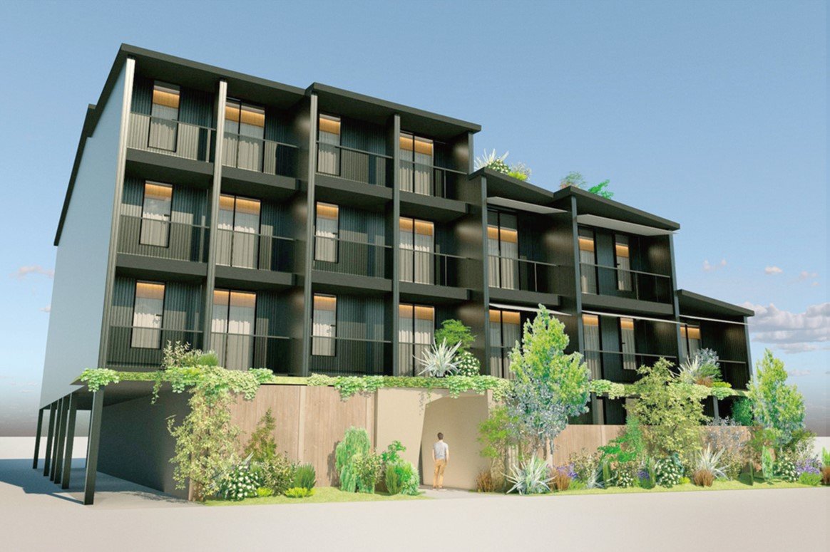 同社はサステナビリティーの実現に取り組んでいる。その一環として、同社初となる木造の賃貸マンションを企画した。自然素材を重視し、内装には木材を多く使用。3階の屋上に自然を感じられる植栽を採用するなど建物緑化にも取り組む。また、ZEH‐M Oriented(ゼッチマンションオリエンテッド)基準にも対応する予定だ。