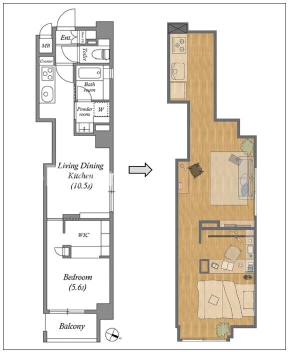 入居者に対して、インテリアコーディネーターによるインテリアのレイアウト提案サービスを無料で付帯する。家具選びやレイアウトに自信がない入居者でも、理想のインテリアデザインが施された部屋に住むことができる。理想の暮らしの提供により、入居者の満足度を高めることで入居率や家賃の上昇を目指す。