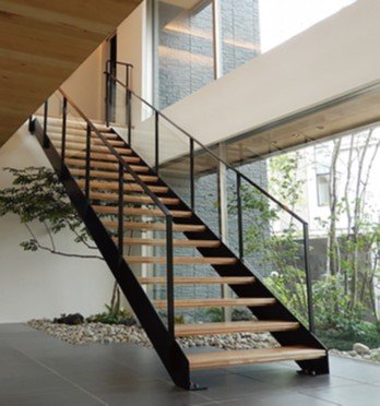 ObjeAと同様、ささら桁、手すり、段板、サイズのカスタマイズができるセミオーダー階段としてのデザイン性はそのままに、集合住宅の共用部にも対応できる独自の強度基準100万回をクリアした。