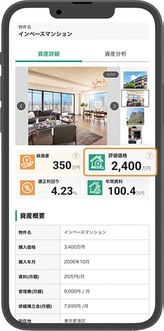オンライン型の住宅ローンサービスを手がけるMFS(東京都千代田区)は、運営する不動産投資アプリ「INVASE Pro(インベースプロ)」に資産評価機能を加した。アプリ上で、投資用マンションや自宅の時価の査定や、売却時の利益の計算を行うことができる。