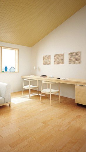ヒノキは国内では昔から建築材として重用され、水に強い性質からヒノキ風呂にも使われている。また香りのあるヒノキのフィトンチッドに含まれるピネン類やテルペン類には、抗菌作用や防虫効果があるとされている。さらに木の特性を熟知した匠(たくみ)の技によって、調湿機能が最大限に引き出されており、一年を通じて快適な居住環境をつくる。