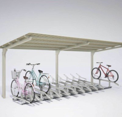 また、2段式自転車ラックがきれいに収まる「ハイルーフタイプ」や、駐輪場屋根2台と専用部品を背中合わせで設置する「両面タイプ」と設置場所や用途に応じて組み合わせることも可能だ。