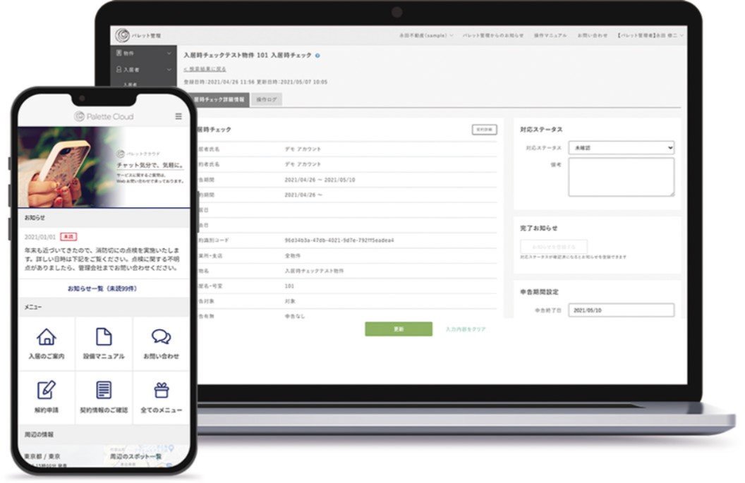 パレットクラウドの入居者向けアプリパレットクラウドの画面