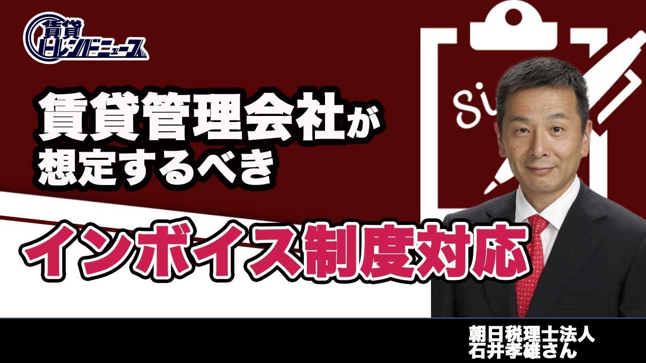 賃貸管理会社は、修繕・メンテナンスや定期清掃業務の多くを、消費税の納税義務を免除された個人事業主や零細企業免税事業者に委託しています。そのため、これら取引先に「適格請求書発行事業者」として登録を依頼するか、これらの取引に関して「仕入れ税額控除」をあきらめるか、管理会社は選択を迫られます。想定される影響について、朝日税理士法人、代表社員の石井孝雄税理士をゲストに迎え、話を聞きます。