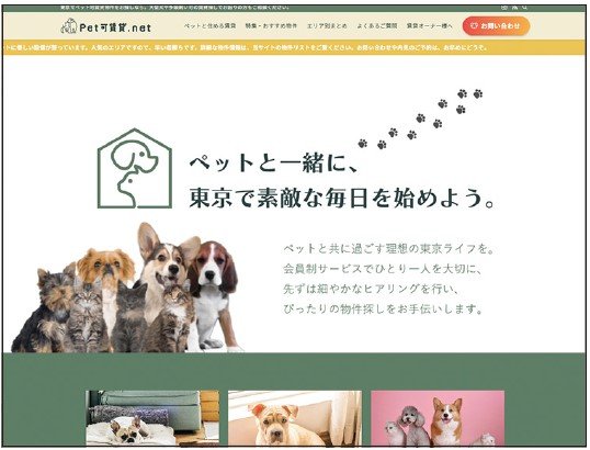 不動産仲介業のトーカンマネジメント(東京都稲城市)は、ペット可の賃貸物件に特化した物件紹介サイト「ペット可賃貸.net(ドットネット)」を運営している。ペット可賃貸物件の仲介業務も行い、ペット飼育者の住まい探しを支援する。