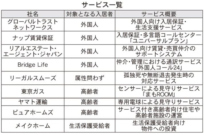 入居時の孤独死や無断退去発生時の対応サービスを提供するリーガルスムーズ(東京都中央区)は、多様な属性の入居者受け入れを支援するサービスを展開している。