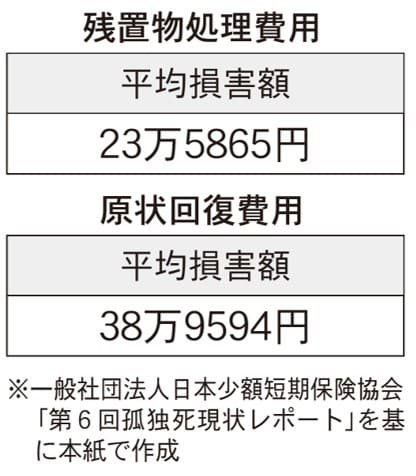19年に国土交通省が発表した全国の死亡者数138万1000人のうち、自宅での死亡者数は18万8000人となり、全体の約14%を占める。では、実際に住居内で孤独死が発生した場合、原状回復費用などはどれくらいかかるのだろうか。 正会員112社からなる一般社団法人日本少額短期保険協会(東京都中央区)では、「孤独死現状レポート」を毎年発行している。孤独死を「自宅内で死亡した事実が死後判明に至った1人暮らしの人」と定義し、協会の会員企業にて孤独死が発生した際の支払い案件データを基に統計化した資料だ。 21年6月に発表された同レポートによると、孤独死の発生した住居の原状回復費用は、平均38万9594円。残置物処理にかかった費用は平均23万5865円だ。孤独死の発生した部屋で再び新しい入居者を募集するためには、決して安くはない金銭的負担が発生する可能性が高いことがわかる。万が一のときのために金銭的リスクを軽減してくれるサービスの導入は、多様な入居者を受け入れる体制づくりに大きく貢献するだろう。