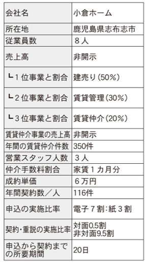 年間の賃貸仲介件数350件の小倉ホーム(鹿児島県志布志市)は、業務効率化を図るため、イタンジ(東京都港区)が提供するオンライン契約のシステムを導入し、完全非対面で賃貸借契約ができる社内体制構築を進める。