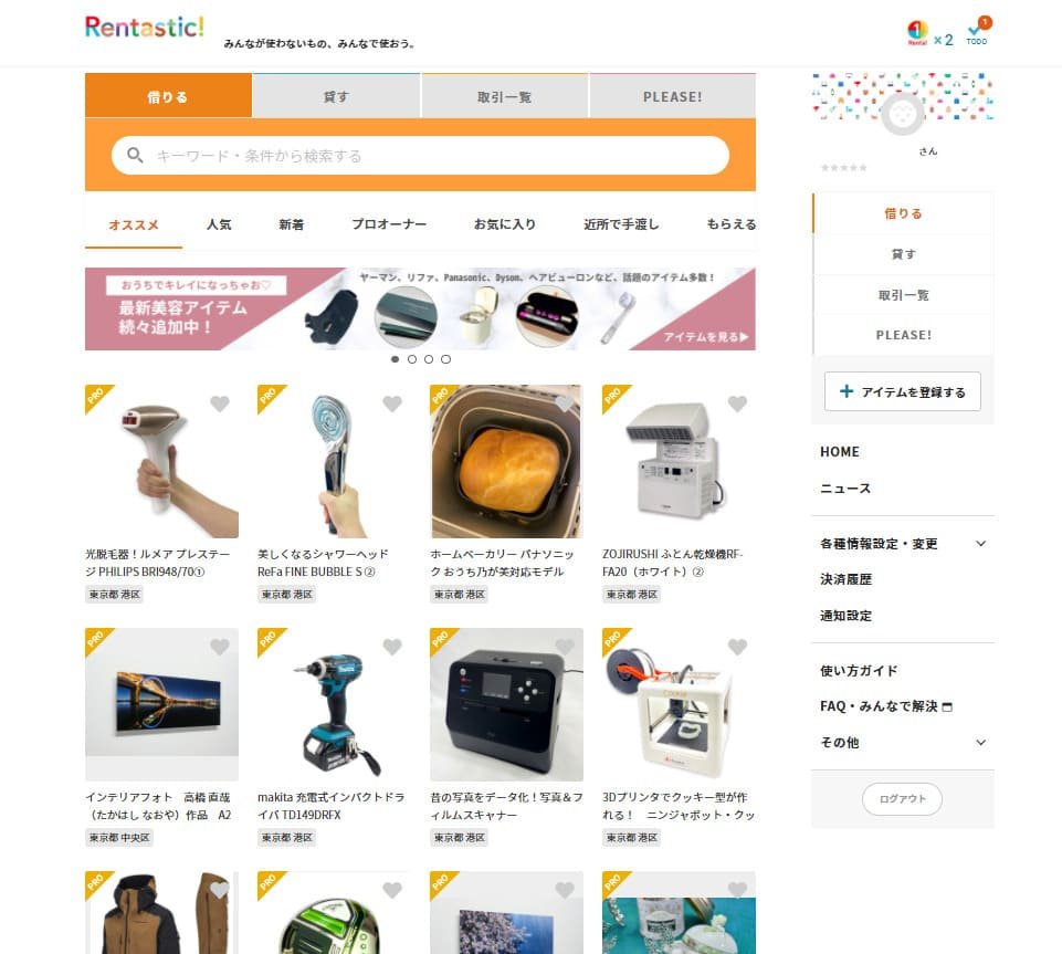 同サービスは、Rentastic!を提供するカローゼット(東京都港区)との協業によるもの。利用方法は、専用のウェブサイトより会員登録を行い、サービス内の通貨「Renta!(レンタ)」を使用してモノの貸し借りを行う。例えば3日間のレンタルには3Renta!を使用する。なお、利用料は無料だ。
