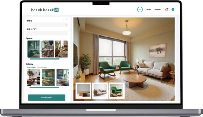 同サービスをベースに、新しいサービスの提供も予定している。実際に販売されている家具を配置できるサービス「knock knockAI+(プラス)」だ。実際の家具を配置することで、よりリアルな室内写真を生成する。従来のモデルはインテリアが海外風になりがちだったが、同サービスでは日本の生活習慣や嗜好に合った内装イメージの提案が可能となる。