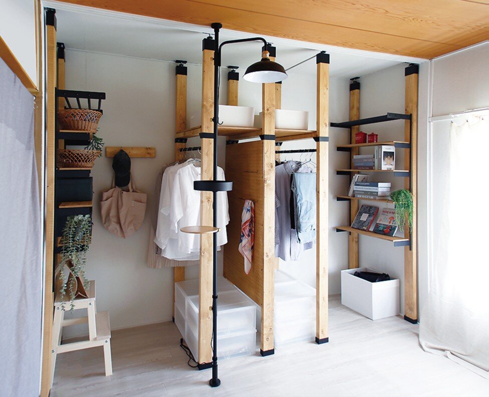 DIY商品の展開や施工を行うDecor Interior Tokyo(デコールインテリアトーキョー)リフォーム(大阪府堺市)は、突っ張り棒を活用したDIYできる収納スペースを展示する。