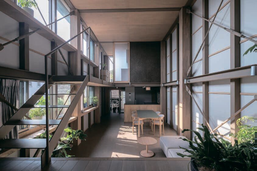 古い家並みが残り、下町の雰囲気も漂う東京都台東区上野桜木。元は駐車場だった場所が、町並みに溶け込むような、趣のある賃貸住宅へと生まれ変わった。室内は約100㎡あり、独特の大きな吹き抜け空間が広がる。長屋を、横に並べるのではなく、立体的に重ねたような構造となっている。募集後、約1カ月でほぼ満室となった。