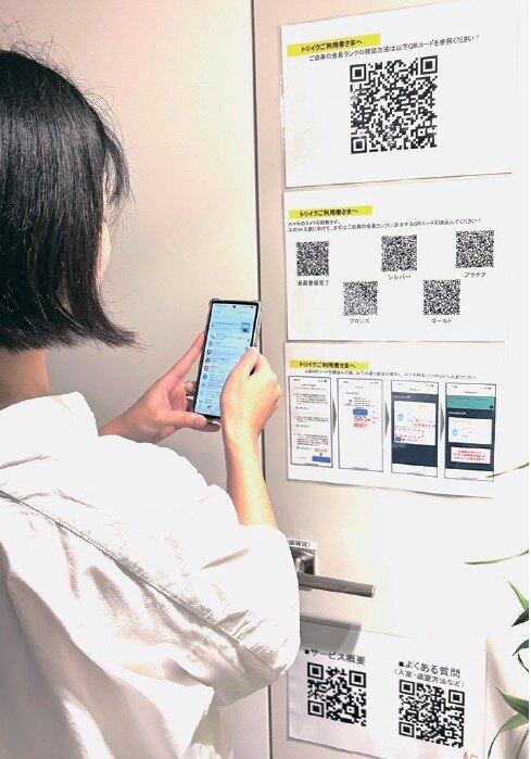 利用者はまずトリイクの「LINE」公式アカウントを通じて専用アプリで会員登録を行い、運転免許証やマイナンバーカードなどの本人確認書類と顔写真を提出。本人確認が完了すると、会員証が発行される。拠点に入室する際は、入り口に掲示されている「QRコード(2次元バーコード)」をスマートフォンで読み込むことでドアのロックが解錠し、入室が可能となる。