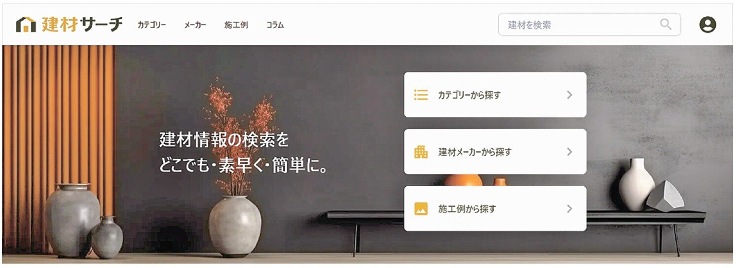 同サイトは2022年に開設され、25年3月時点で建材を掲載するメーカーは35社に上る。同社の集計では、月間約8万人のユーザーが利用している。