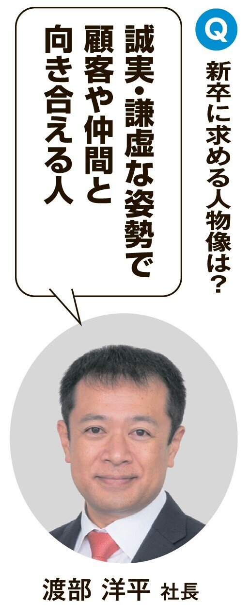選考フローは、夏季・冬季に行うインターンから始まり、24年に竣工した新社屋見学を兼ねた会社説明会の実施、3回の面接と適性検査を経て内定を出す。例年、会社説明会には30〜40人の参加がある。26年度は約25人が選考に進み、9人に内定を出し、5人が入社した。