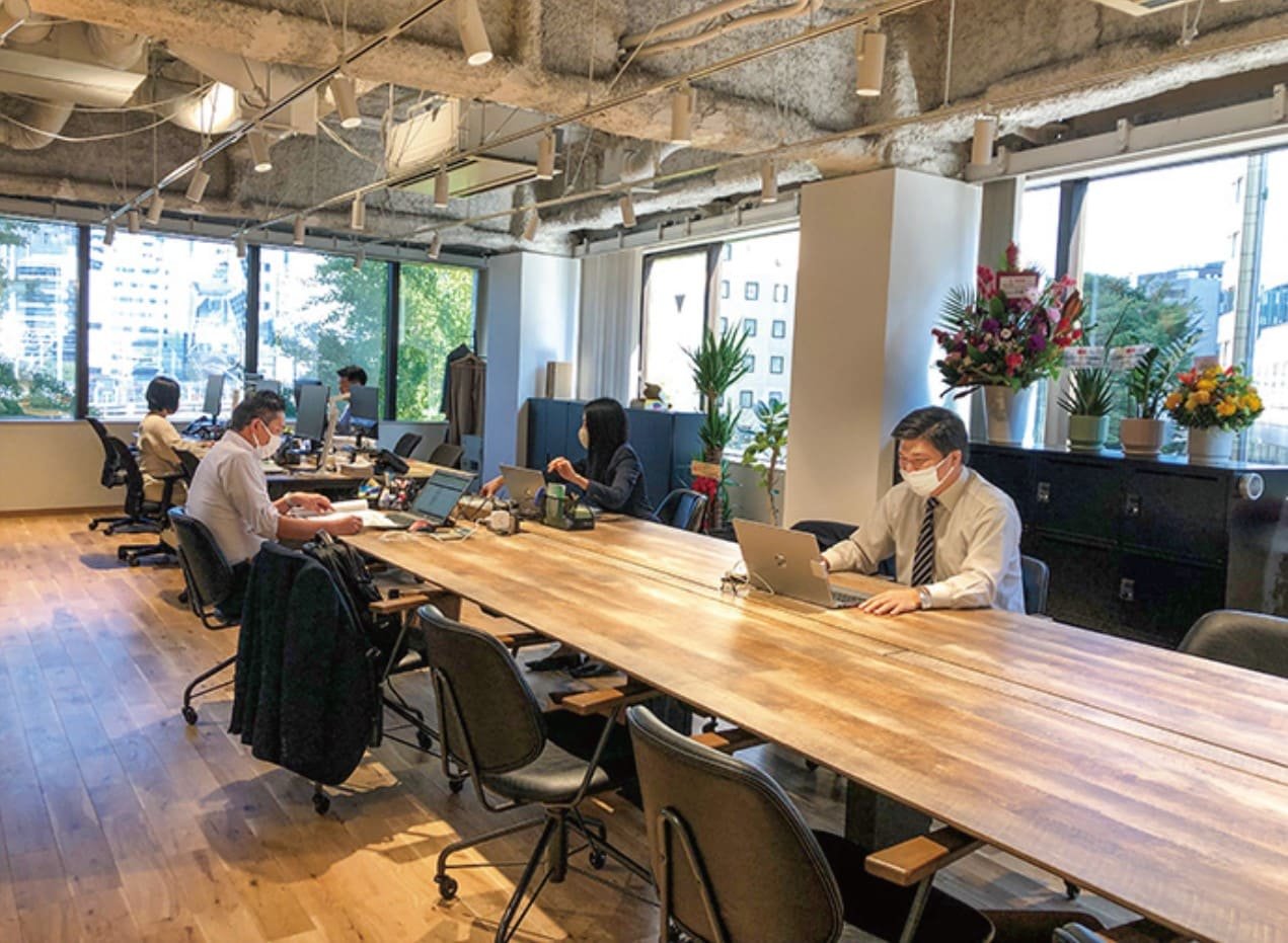 新社屋の社内。フリーアドレス制に変更した