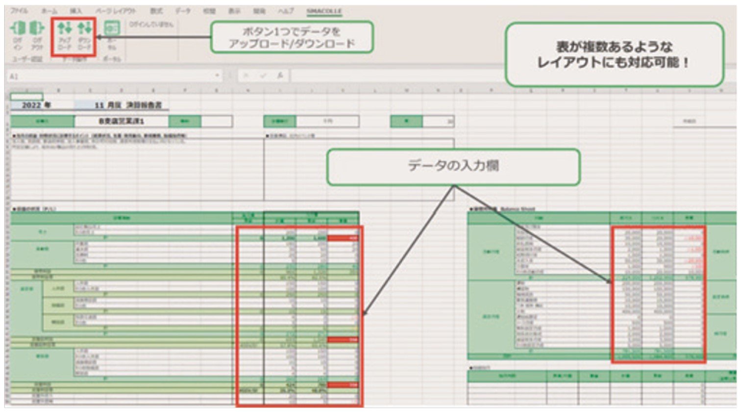 エクセルが苦手とするデータの蓄積・収集をサポートするサービスとして開発された。エクセル画面の簡単な操作で、複数の入力担当者が作成したデータを、自動的に一つのデータベースに集積する。クラウド上でデータを一元管理するので、エクセルファイルの破損や紛失を防ぎ、大量のデータ保存も可能になる。「エクセルは自由にレイアウトを変えられる、関数を使える、多くの人が操作に慣れているといった点で優れている。DX(デジタルトランスフォーメーション)推進のために新しいシステムを導入しても、エクセルを手放せない現場は多い」(小竹三郎代表)