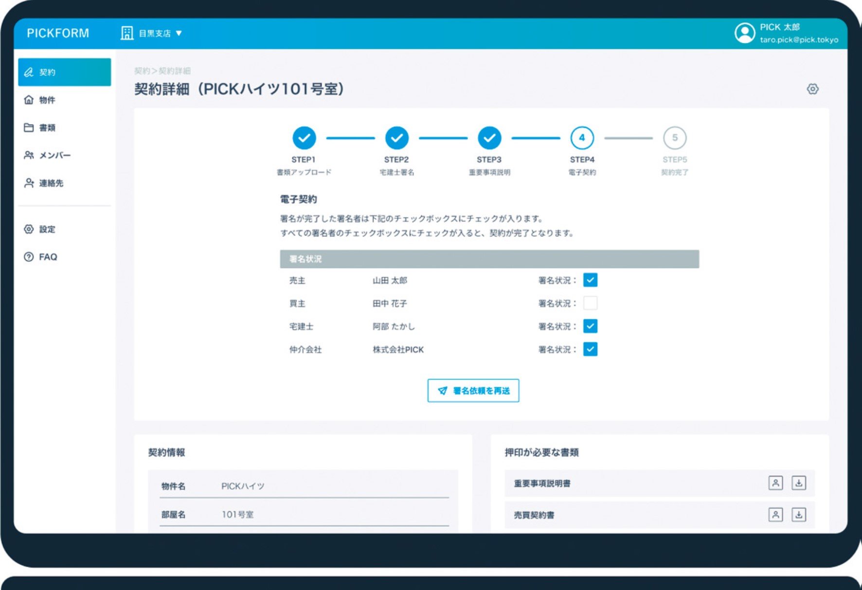 23年5月には、住宅メーカーのアイダ設計(さいたま市)での導入を発表した。同社では、宅地建物取引業法に則した電子契約の運用に課題を持っていた。PICKFORMは、国土交通省が定めた電子契約手続きに関するガイドラインに準拠したシステム設計が強みであり、新たに社内オペレーションを構築せずに電子契約を利用することができる点から導入に至った。