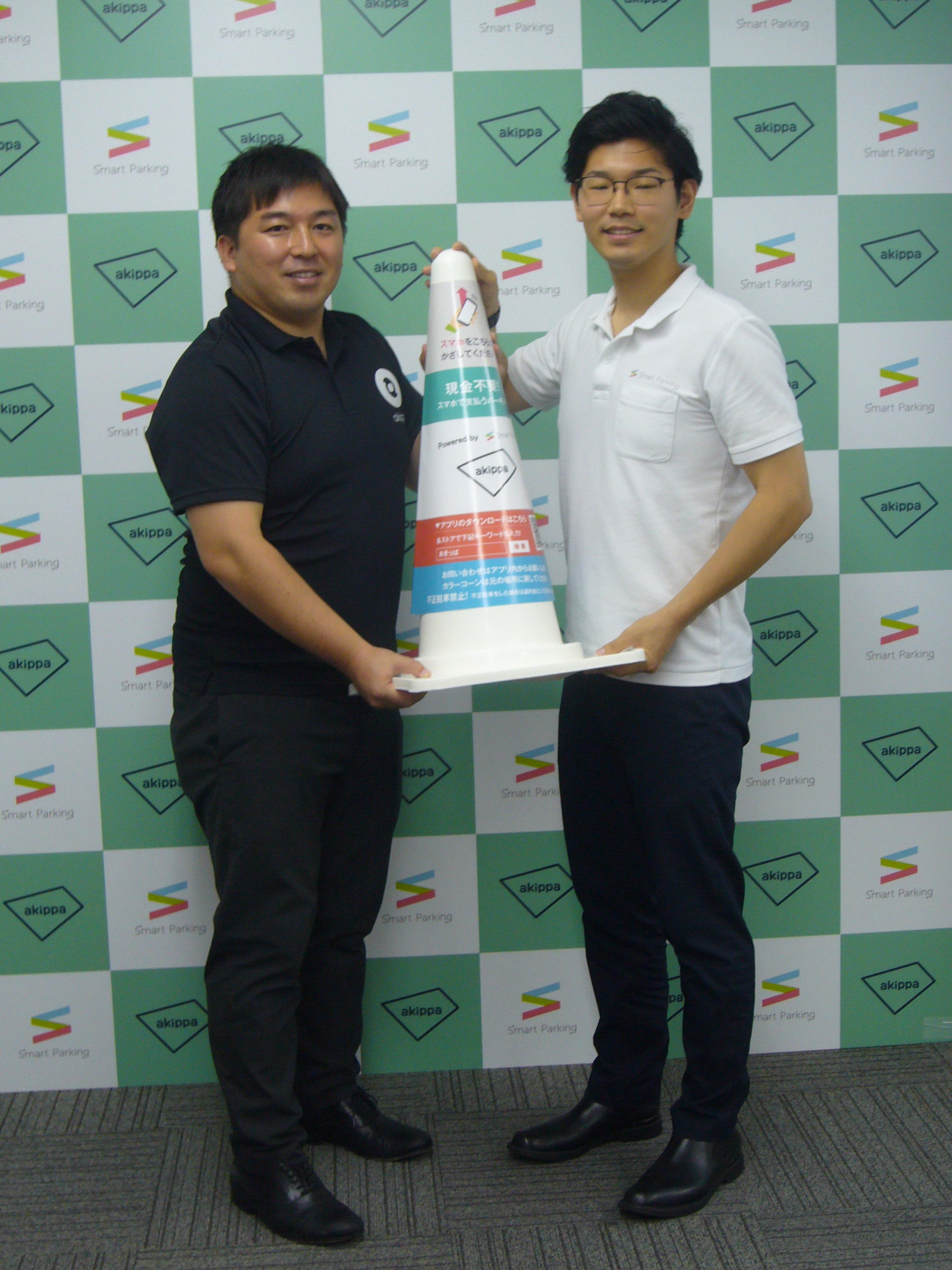 今回の提携ではまず、Smart Parkingがネットワークとして持つ駐車場をakippaアプリにも掲載し、akippaのユーザーがSmart Parkingのサービスを受けられるようにする。2つ目は、Smart Parkingが使用している管理端末を組み込んだカラーコーン「ビーコーン」をakippaにOEM供給し、akippaアプリ内でもSmart Parkingの機能を体験できるようにする。10月までに数十カ所で実証実験を行い、11月からは数百カ所規模で導入する見込みだ。