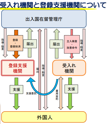 改正によって、就労を目的とした新たな在留資格「特定技能(1号・2号)」が新設された。特定技能の外国人労働者を受け入れる企業には支援義務が生じる。義務になるのは出入国時の送迎、住宅確保や生活に必要な契約のサポート、日本語学習の機会提供、相談や苦情の対応、転職支援などだ。その一部を出入国在留管理庁に登録している「登録支援機関」に委託できる。