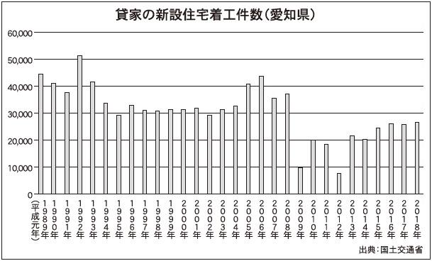 特に昭和後期は名古屋周辺の区画整備が活発化され「更地の土地活用策として、平成初期にかけてアパート経営がブームとなった」(名古屋市内の管理会社社長)といった背景があることも関係していそうだ。