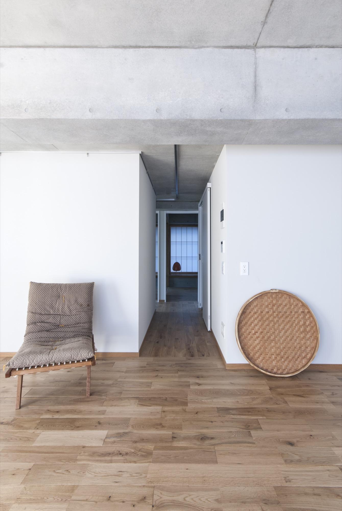 この周辺は以前、町家風の問屋や加工所が集まった繊維の町として栄え、関東大震災や東京大空襲で焼け残ったエリアだ。そのため昔ながらの雰囲気が残る店と新しいオフィスなどが入り交じっている。そこで同建物の建築・監理を手掛けたアトリエ・ワン(東京都新宿区)は、同建物に「町家を現代の集合住宅に当てはめたらどういうことができるか」という視点を取り入れ住まいづくりに生かした。