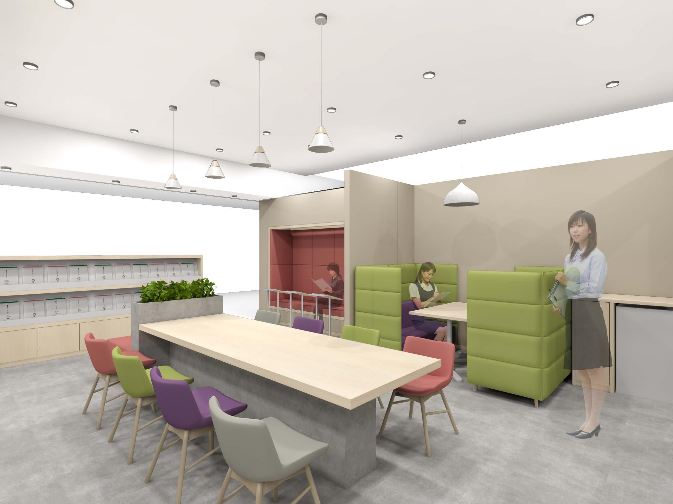『相続LOUNGE』は、JR「博多」駅前の複合商業施設『KITTE(キッテ)博多』にある『博多マルイ』の5階に開設。買い物客が気軽に立ち寄れるように、扉や壁などで仕切らず、オープンなスペースとなる。