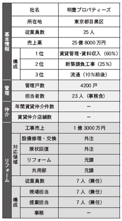 東京23区を中心に、収益不動産開発・販売を行う明豊エンタープライズ(東京都目黒区)の連結子会社で賃貸管理を手掛ける明豊プロパティーズ(同)では、管理物件にかかわるリフォームも行っている。
