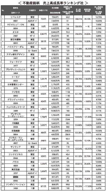 不動産銘柄 売上高伸び率ランキング