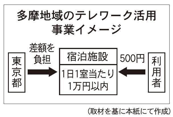 東京都、多摩地域の宿泊施設をテレワークに活用 東京都 その他|2021年03月20日 東京都は2月12日、東京都多摩地域の宿泊施設の客室をサテライトオフィスとして提供する事業の拡充を発表した。 利用者増を受け対象室数を拡大 同事業は都心部に出社する人を減らしテレワークを推進することと、宿泊施設支援を目的に1月から開始された。1日1室1万円以内のプランを提供する宿泊施設が対象。リモートワークの利用者は500円のみを負担すればよい。宿泊施設側にはプラン金額から500円を引いた差額を東京都が負担する。