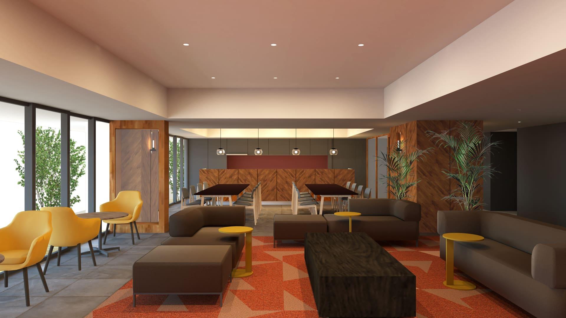 階層ごとに機能を分け、1~3階が駐輪場を含む商業施設、4~9階がテナント、10~14階が全112戸の賃貸住宅になっている。共有部に入居者が自由に利用できる共有スペースを設けた点が特徴だ。ワークスペースの他ラウンジを設けた。