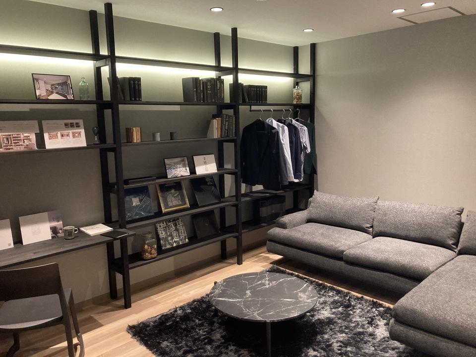 本社1階の、賃貸と売買の店舗には、書店やカフェをイメージしたような接客空間をつくった。感染症対策として、入居時の注意点の説明を1人で受けられるように、動画視聴専用ブースも設置した。