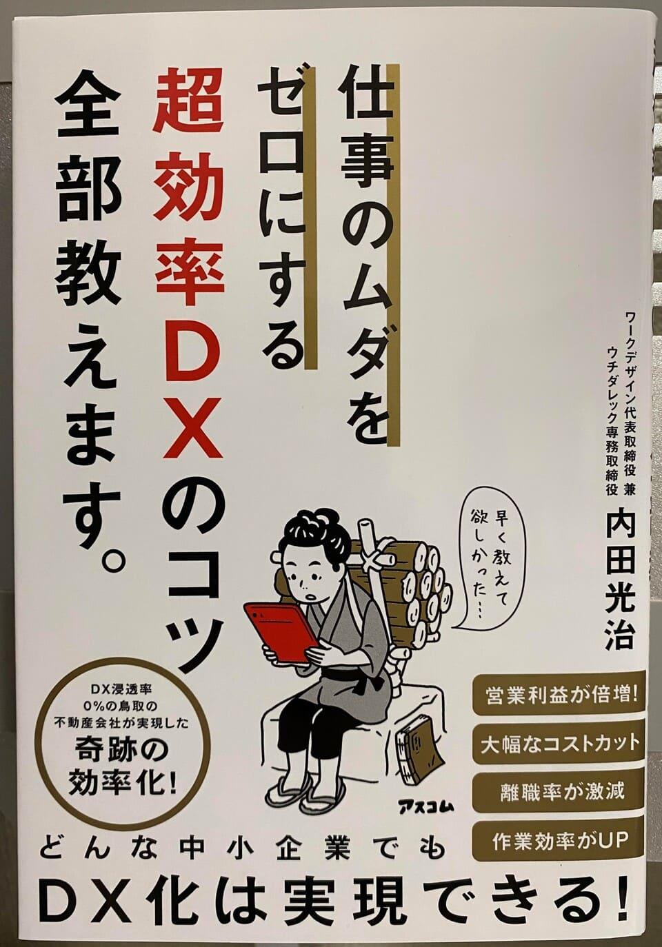不動産会社のウチダレック(鳥取県米子市)内田光治専務が6日、自身初の著書となる『仕事のムダをゼロにする 超効率DXのコツ全部教えます』を出版した。同社で取り組んだDX(デジタルトランスフォーメーション)によって業務改革や従業員の働き方改革を成し遂げた経験をもとに、指南書としてまとめた一冊だ。