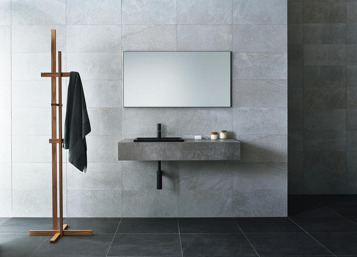 住宅設備をインターネット販売するサンワカンパニー(大阪市)が、モルタルのような質感の洗面カウンター『モルタナ洗面』を発表した。DIYが普及し、建築材料に対する消費者の関心が高まるにつれ、内装用素材としてシンプルな素材の持つ風合いからモルタルの人気が高まっている。だが、一般的なモルタルはひびが入りやすく、強度に不安があるため、洗面台で使われることはなかった。同社が開発したセラミックタイルにモルタルのような色ムラや凹凸感を施して焼き上げた素材を『モルタナ洗面』でも活用した。
