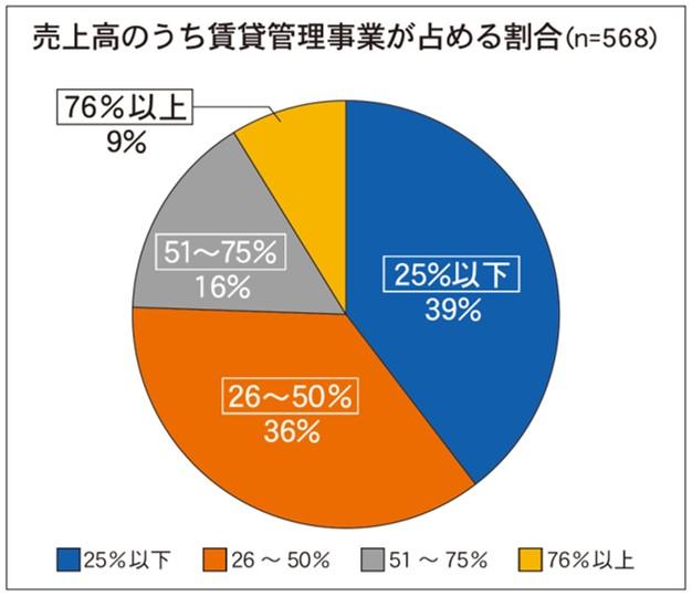 当社が5~7月に実施した「管理戸数ランキング」のアンケート取材の結果から、賃貸管理事業の売上比率が51%以上と回答した企業が4分の1にしか満たないことがわかった。1万戸以上の会社はサブリースが中心だが、3000~1万戸未満の会社は一般管理を事業の柱とする会社が多い。賃貸住宅管理業適正化法(以下、管理業法)の施行を機に管理受託を強化する会社も出てきており、伸びしろを見いだせる事業として各社の関心も高い。