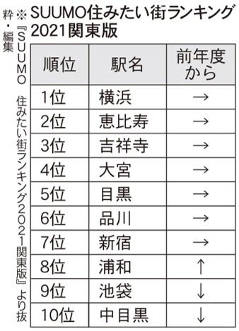 1位から7位は前年から変化がなかったが、21年のランキングで特徴的だったのはほぼすべての駅が得点を落としていることだ。「自分の住んでいる街に投票する人が増えたために得点が散ったのでは」と池本編集長は推測する。特に埼玉県民は今までは他県や東京都に投票する人が多かったが21年の投票においては54.5%が埼玉県内の駅に投票した。茨城県民にもその傾向があったが、埼玉で最もその傾向が出た。埼玉県は今回のランキングで4位に大宮が、8位に浦和、15位にさいたま新都心が入るほか、そのほかの和光市、川口、所沢も過去最高順位にランクインすると全体的に人気を上げてきた。