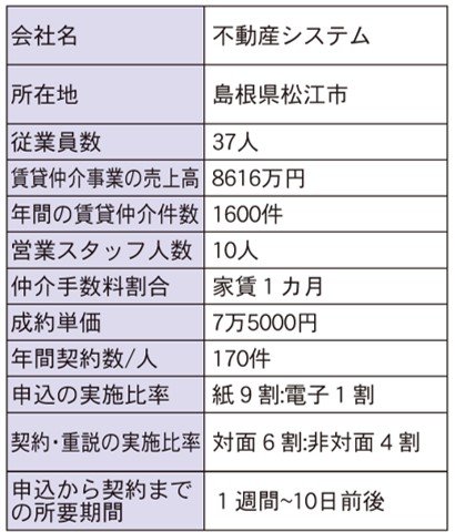 年間1600件の賃貸仲介を行う不動産システム(島根県松江市)では「LINE」のビデオ通話を利用し、重要事項説明(以下、重説)や賃貸借契約を行うことにより、業務負担の軽減につなげているという。