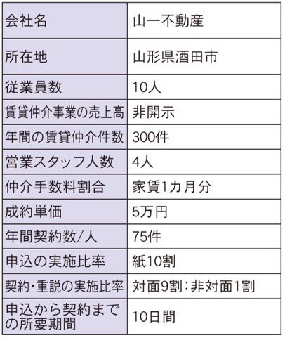 年間300件を賃貸仲介する山一不動産(山形県酒田市)は、入居申し込みの対応は原則紙で行っているが、顧客の利便性向上のために、電子申し込みの利用を検討している。