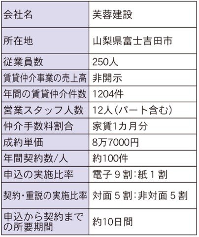 年間1204件の賃貸仲介を行う芙蓉建設(山梨県富士吉田市)では、21年から電子化への切り替えを推進し、現在申し込みの9割を電子で行っている。5月の電子契約全面解禁に向け、着々と準備を進める。