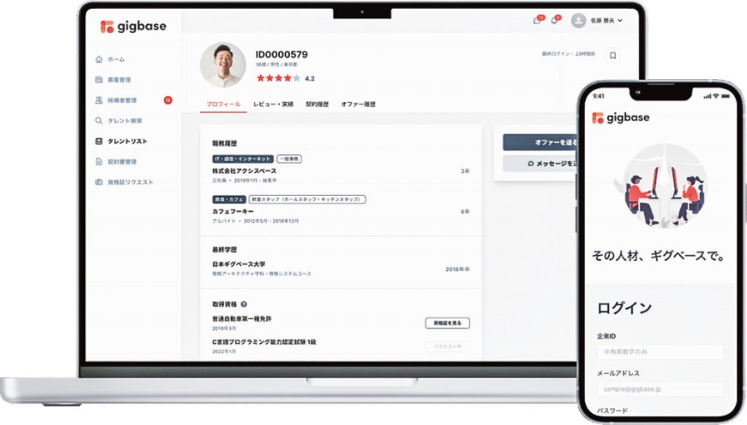 一般的な転職サイトでは、転職意欲を持って登録している「求職顕在層」にしかアプローチできない。一方、gigbaseでは、いい求人があれば転職したいと考え登録している「求職潜在層」にも募集をかけられる点が大きな特徴。まずは業務委託という形でギグワーカーに仕事を依頼し、仕事ぶりなどを判断したうえで、改めて社員として雇用することが可能になる。そのため、多様なバッググラウンドを持つ人材の確保につながるだけでなく、採用のミスマッチが起きづらい。