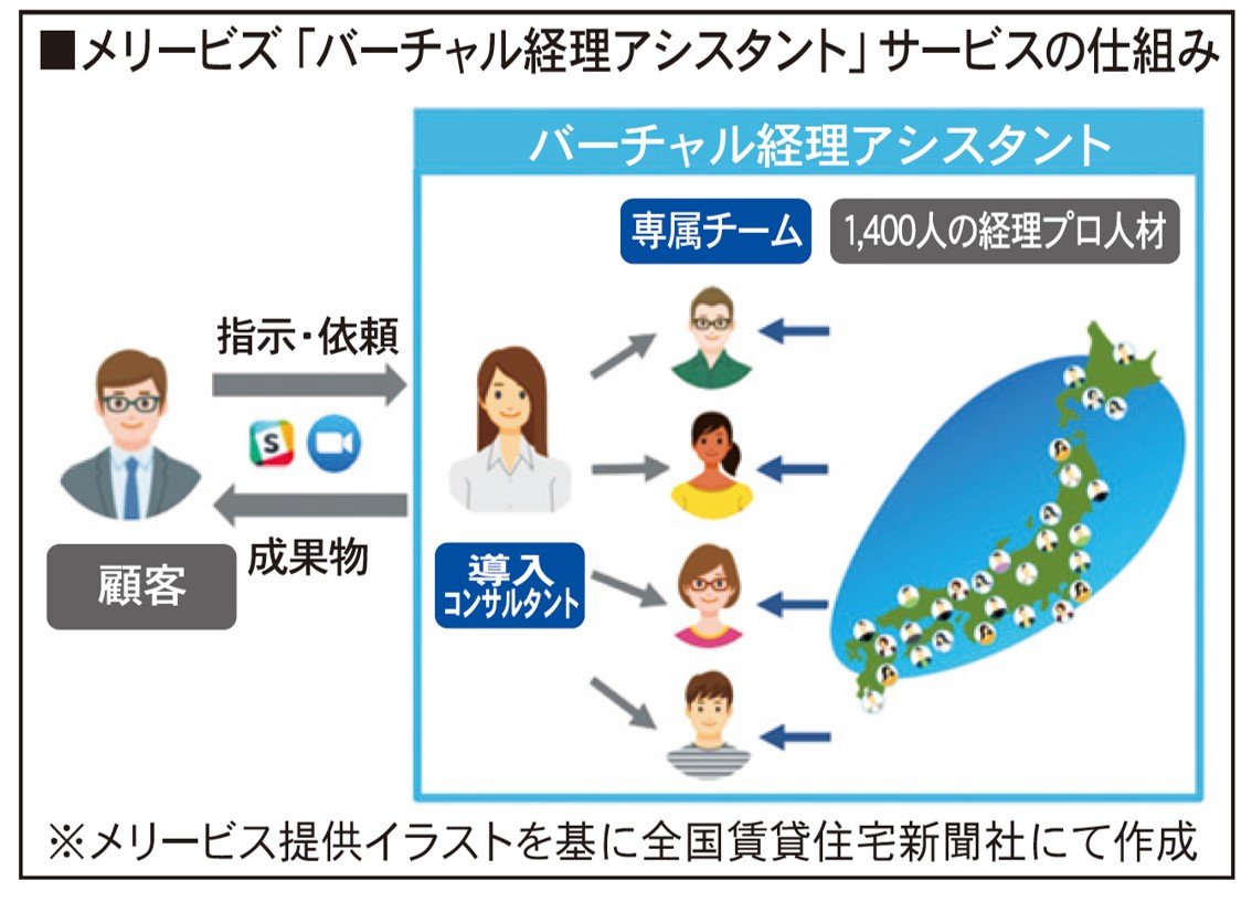 メリービズ、経理業務をアウトソース メリービズ その他|2023年02月03日 経理代行サービスを行うメリービズ(東京都渋谷区)は、経理業務をオンラインで代行するアウトソーシングサービス「バーチャル経理アシスタント」を提供している。経費の精算や請求書の発行など、企業内の経理業務を代行し、業務効率化を見込む。 リモートスタッフが業務対応 クライアント企業の規模に応じて2~10人の専属チームを結成する。構成は、導入コンサルタントとリモートスタッフの経理人材だ。経理人材は、全国に1400人在籍する。こうした体制により、経費精算や帳票・仕訳入力、請求書の発行、売り掛け・買い掛け管理、月次決算などあらゆる経理業務に対応している。