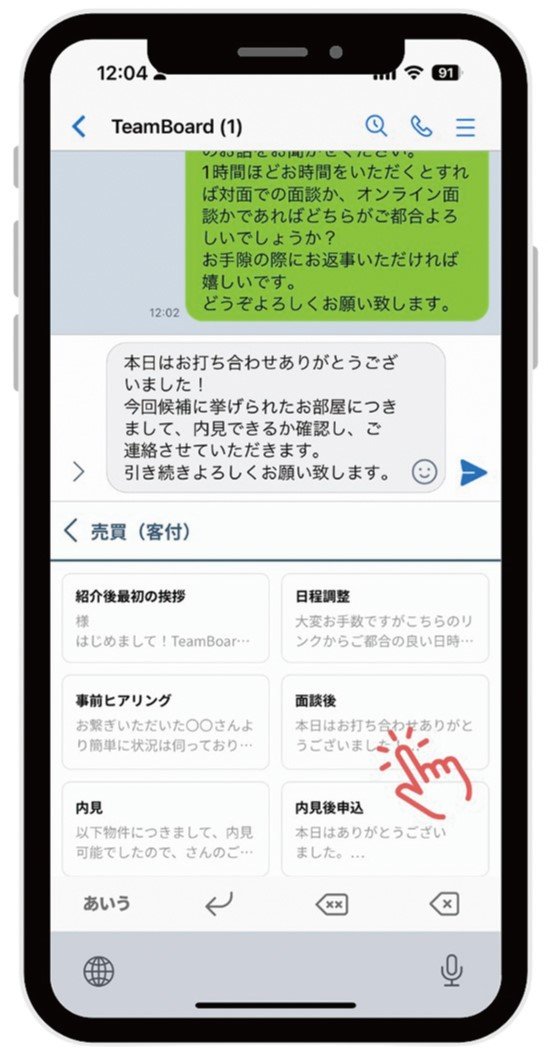 定型文や画像データなどをクラウド上に登録すると、同アプリをインストールしたスマートフォンのキーボードから登録データをワンタップで送信できるようになる。メールやSMS(ショートメッセージサービス)、「LINE」など、キーボードを開けるすべての通信アプリで利用することが可能だ。不動産会社では、物件への反響後の返信や内見希望者への地図の送信、物件紹介時の資料送信などに利用することができる。