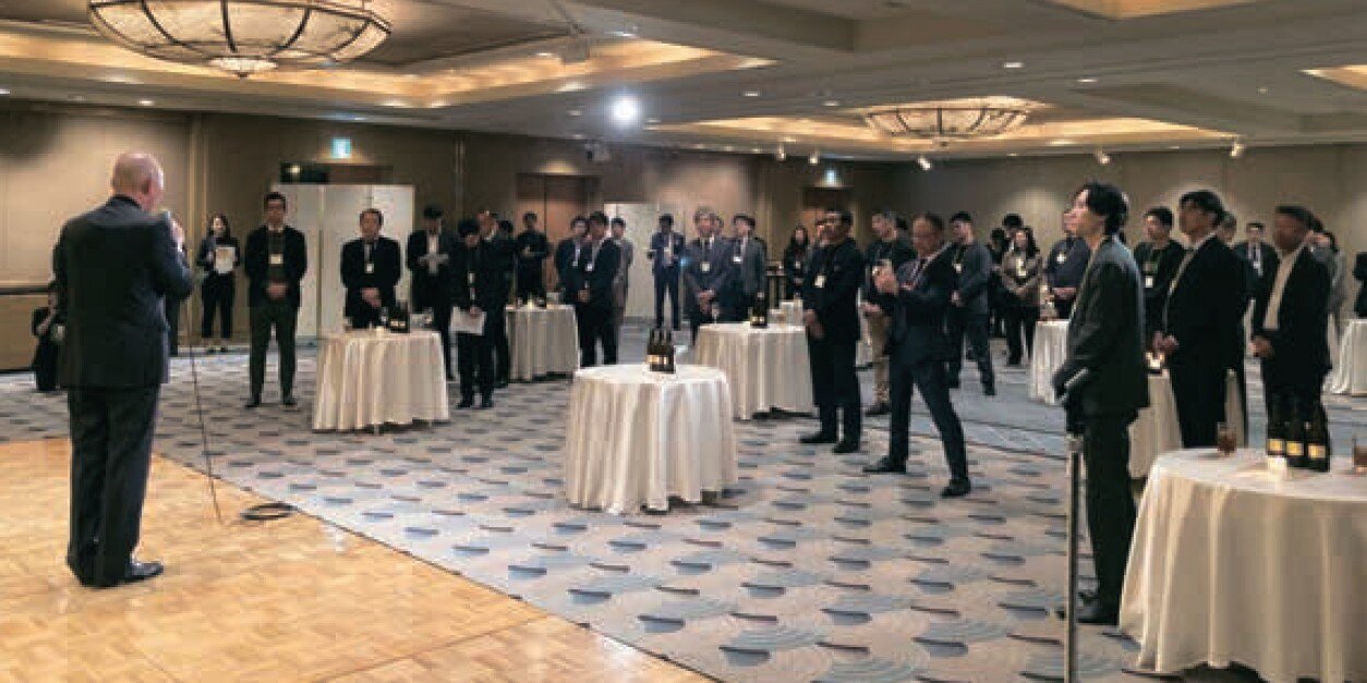 主な参加者は、関西エリアの不動産会社と、本フェアにセミナー登壇や出展として関わった事業者らで、約100人が来場。2025年11月26日の午後5時30分からの開始で、会場はインテックス大阪近くの「グランドプリンスホテル大阪ベイ」だった。立食形式の懇親会で、事前予約制。